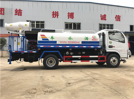 車輛配置:采用東風原裝底盤,東風D6型小多利卡駕駛室,3308mm軸距,朝柴102馬力國五發動機,萬里揚5擋變速箱,7.00鋼絲胎,氣剎,方向助力,帶空調。罐體容積:4.6立方,該車具有灑水車功能,前沖、后灑、側噴、泵自吸自排、綠化灑水炮、消防栓接口、可通過消防栓進水,帶自流閥,帶過濾裝置。后平臺加裝CLW-30型霧炮噴霧機組,噴霧射程30米。已順利發往江西南昌交付用戶使用!