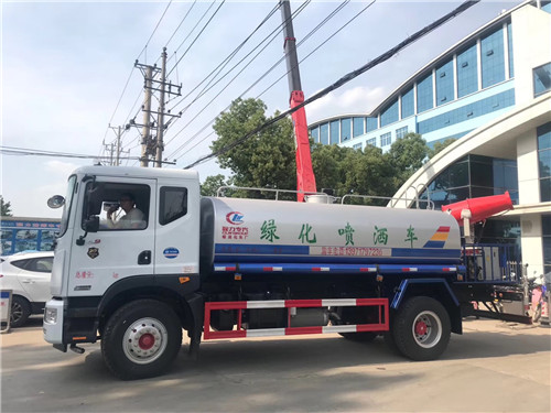 根據(jù)客戶要求:罐體容積約12立方;專用功能為:前沖后灑,帶側(cè)噴,帶高位花灑,罐體后帶工作平臺,平臺上安裝綠化灑水高炮,灑水炮可全方位旋轉(zhuǎn),并有多種雨狀可調(diào)節(jié)(大雨、中雨、毛毛雨、霧狀),泵可自吸自排,帶自流閥,帶消防接頭,帶過濾裝置。后平臺加大安裝30型柴油發(fā)電機組全自動霧炮噴霧機組,遙控操作,工地拆遷,降塵,園林綠化,花卉植物噴藥皆可使用。