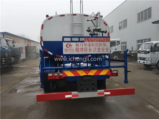 根據(jù)客戶要求:罐體容積約12立方;專用功能為:前沖后灑,帶側(cè)噴,帶高位花灑,罐體后帶工作平臺(tái),平臺(tái)上安裝綠化灑水高炮,灑水炮可全方位旋轉(zhuǎn),并有多種雨?duì)羁烧{(diào)節(jié)(大雨、中雨、毛毛雨、霧狀),泵可自吸自排,帶自流閥,帶消防接頭,帶過濾裝置。