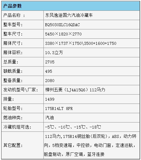 六、選裝配置:可選裝廂體側門(單側門或雙開門),可選裝鋁合金導風槽(導風槽有助于冷氣循環,提升制冷效果),可選裝廂體頂部加固肉勾滑道(直滑道 或 對接互通式拐彎滑道)。可選裝廂體內部采用全面不銹鋼材質(海鮮運輸必須加裝,海水有腐蝕性),可選裝280V-380V外接電源(停車熄火后可插電冷機繼續制冷工作),可選裝溫濕度監控記錄儀(帶打印功能)。
