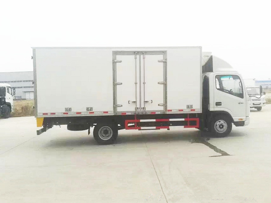 標準:冷藏車由專用汽車底盤的行走部分,與隔熱保溫廂體(一般由聚氨酯材料,玻璃鋼組成、彩鋼板、不銹鋼等),制冷機組,車廂內溫度記錄儀等部件組成,對于特殊要求的車輛,如肉鉤車,可加裝肉鉤,攔貨槽,鋁合金導軌,通風槽等選裝件。