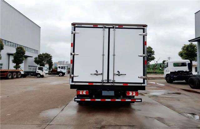 江淮帥鈴Q6_4.2米冷藏車功能特點:采取上為先進的聚氨酯板塊粘接結構,具有一定的力學強度,能承受汽車在惡劣道路條件的振動,無毒無味,透氣性小,隔熱材料燃燒時,不得分解出有毒有害氣體。廂板表面材料包括FRP、不銹鋼、鋁合金、彩鋼板等材料。在廂體與門體間加裝抗低溫絕熱密封條,門鎖機構選取國際廂式車不銹鋼標準件。