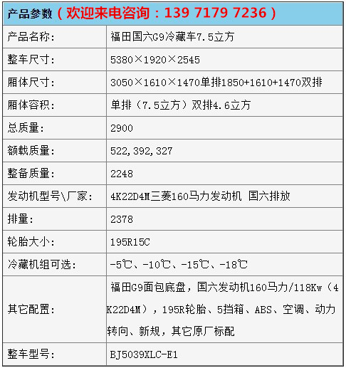 六、選裝配置:可選裝廂體側門(單側門或雙開門),可選裝鋁合金導風槽(導風槽有助于冷氣循環,提升制冷效果),可選裝廂體頂部加固肉勾滑道(直滑道 或 對接互通式拐彎滑道)。可選裝廂體內部采用全面不銹鋼材質(海鮮運輸必須加裝,海水有腐蝕性),可選裝280V-380V外接電源(停車熄火后可插電冷機繼續制冷工作),可選裝溫濕度監控記錄儀(帶打印功能)。