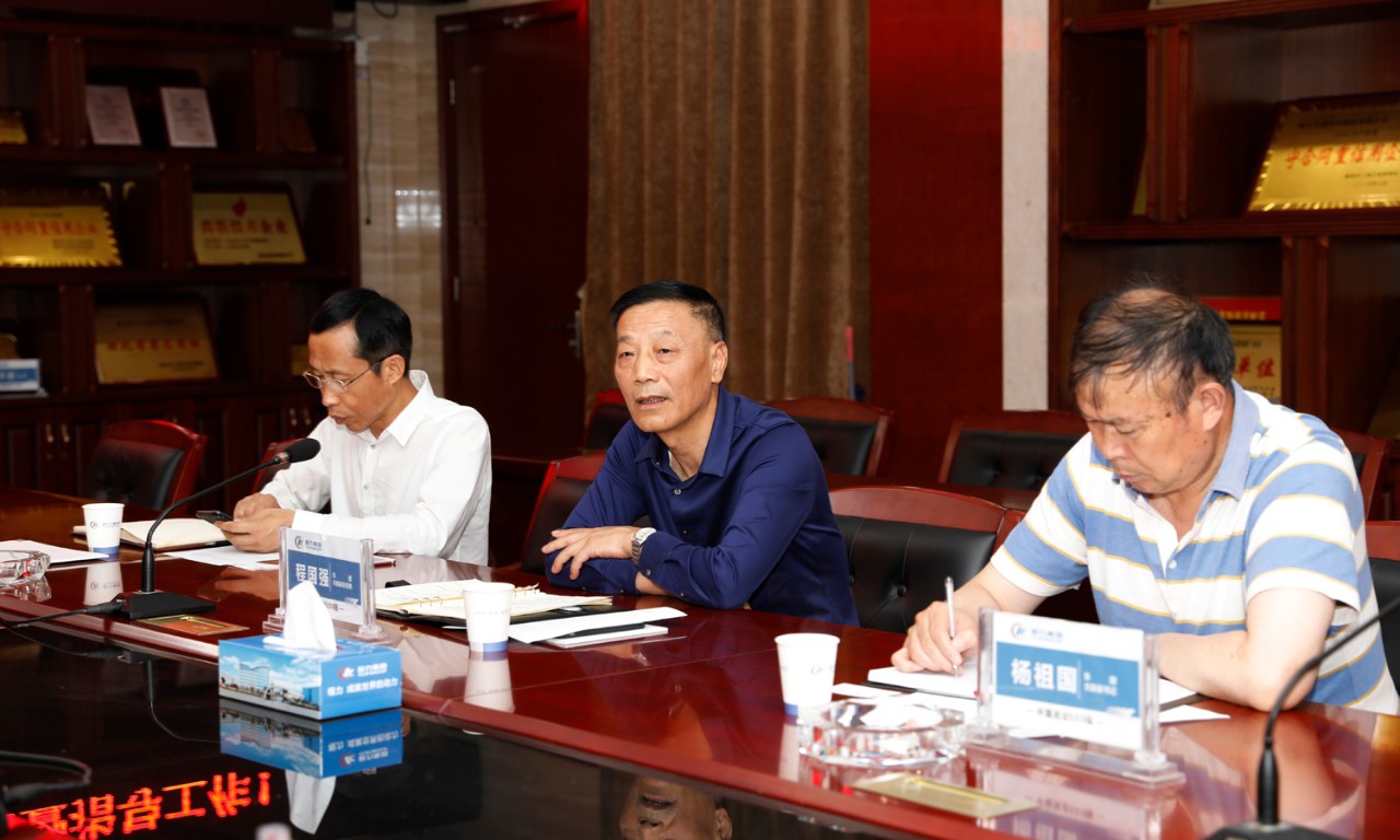 程力汽車集團黨委副書記、常務副總經理程國強(中),黨委副書記、行政管理中心主任楊祖國(右)向嘉賓們介紹企業情況。