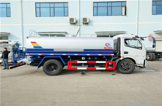 上裝配置:罐體容積為10.37立方灑水車,罐體鋼板為4mm碳鋼Q235材質,罐內隔板具有防波作用,以減輕汽車行駛時罐體液體沖擊,罐體及整車外形尺寸按照公告。帶大功率專用灑水泵,泵可自吸自排,整車前沖、后灑、側噴、帶65消防接口,后平臺帶綠化灑水炮,灑水炮可全方位旋轉,可連續調成直沖狀、大雨、小雨、毛毛雨;前封頭帶水位計,后平臺主管路帶1寸澆花接口,后爬梯。平臺后部帶小安全告知牌:“隨時停車,注意安全”,帶兩根水管及陰陽端。罐體顏色:上白/下藍,銀灰/銀藍,罐體兩側噴“灑水車、綠化噴灑車”字樣,貼反光標示。灑水車可加裝前沖后灑氣動閥駕駛室控制、可加裝霧炮機組發電機組噴霧降塵裝置、車頭可加裝推雪雪鏟、雪滾裝置街道、公路除雪等。