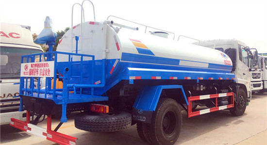停車掛擋灑水車無論是在吸水前,還是在灑水前,取力裝置掛擋都必須在停車時(shí)進(jìn)行。灑水車前噴頭位置較低,靠近地面,噴灑壓力較大,可用于沖洗路面;后噴頭位置較高,灑水面較寬,可用于公路施工灑水。