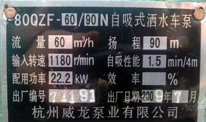 灑水車水泵銘牌圖片: