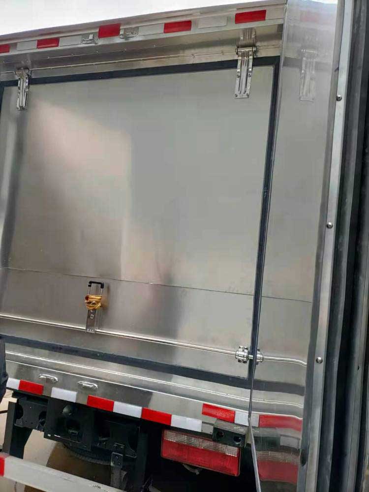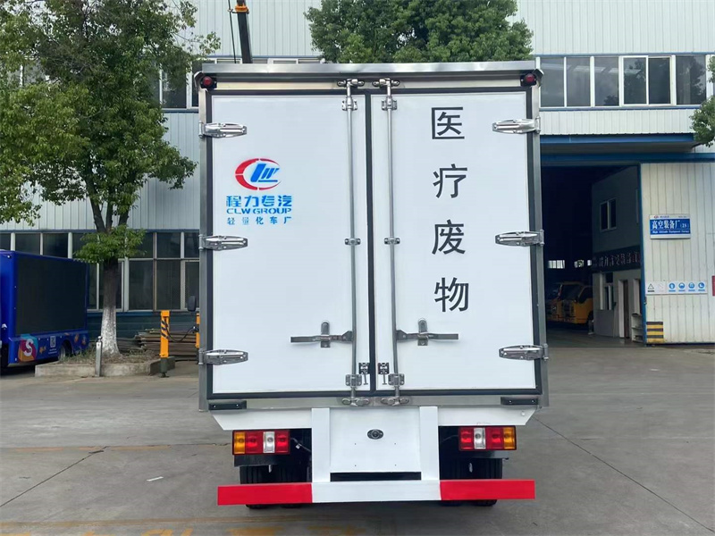 江鈴順達3.96米醫療廢物轉運車上裝配置:廂體后門門周邊選取密封條,門是雙層的額,密封的盒保溫效果非常不錯。廂體周邊選取不銹鋼的包邊包角。選擇的都是不銹鋼的門鎖,門框,合頁等五金件。醫療廢物轉運車上必須要貼有危險標識,因為醫療垃圾是第六類感染性物品。