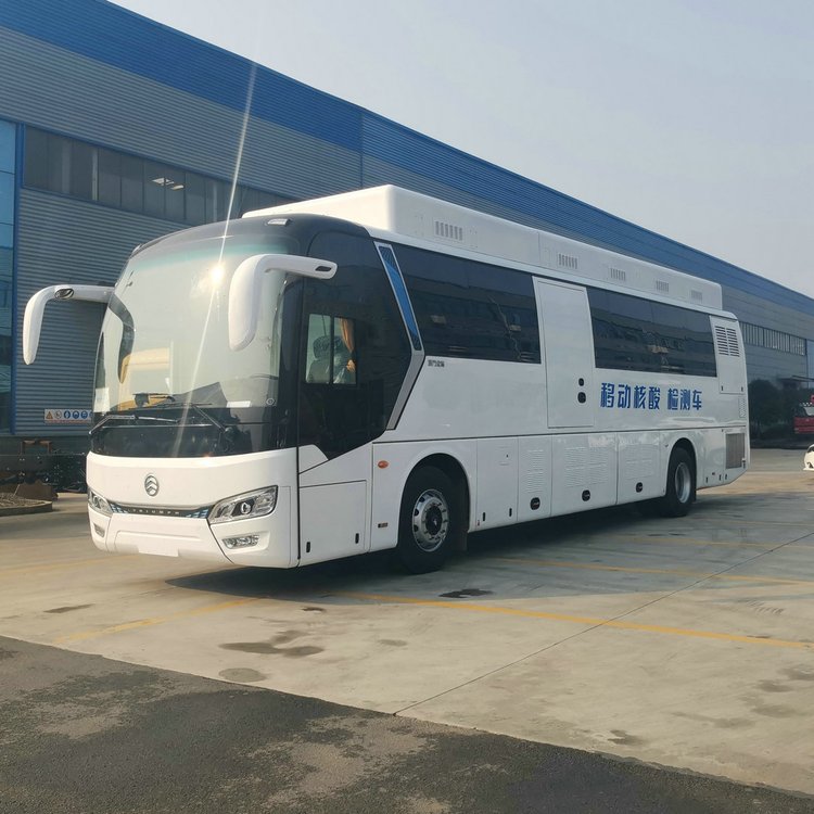 咽拭子取樣車多功能檢測車_金旅12米移動大巴多功能檢測車,車頂平臺使用鋁合金花紋板,具有防銹功能,皮實耐用。車外螺釘、 螺母、墊片等緊固件優先選擇不銹鋼,防腐防銹。樣品制備室——樣本滅活,使樣本不具有傳染性,同時提取病毒核酸。額定載客:2-9,2-6(人)。需焊接和噴涂防銹漆的金屬件,先進行鍍鋅鈍化或導電氧化等處理,車外的油漆與原車的油漆一模一樣。車內材料以耐腐蝕鋼、對應類別的鋁合金、不銹鋼等為主。各種材料均適合相應的材料標準,無污染、綠色環保材料、防火/防水材料,膠粘劑為無苯膠粘劑。客車專用車車載飲用機主要給醫務人員給予飲水利于,冷熱自飲,防止干燒。