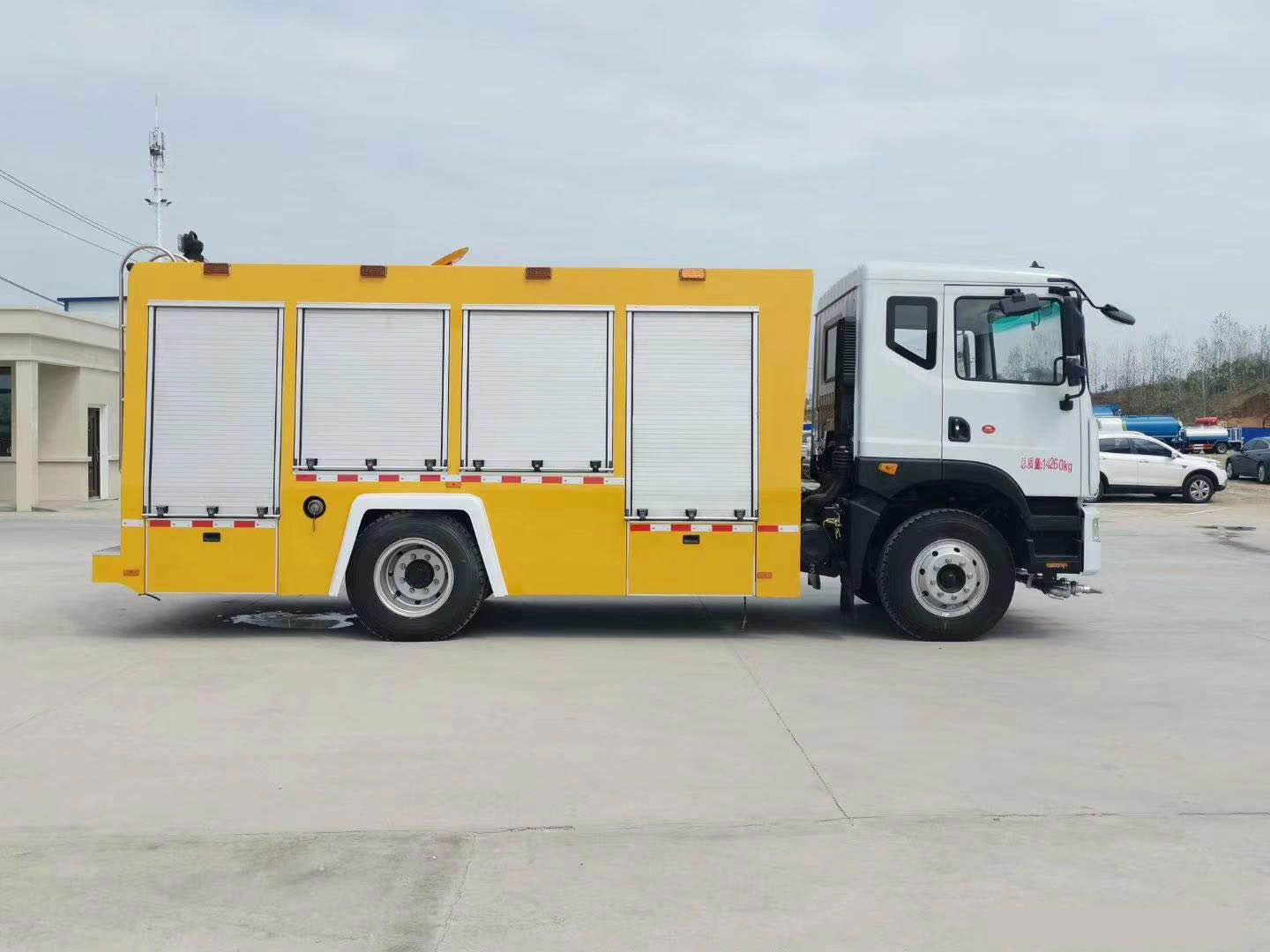 黃牌搶險救援車_廣西崇左東風(fēng)多利卡D9工程搶險救援車車型亮點:封閉部分可做成工具箱,根據(jù)車載的設(shè)備的規(guī)格和不同的用途進(jìn)行分配。配備的有警燈警示、AC220V發(fā)電供電、逆變電源、照明、液壓動力源等。鋁合金卷簾的優(yōu)勢是開關(guān)利于,且具有隔溫、隔熱、防蟲等優(yōu)勢。結(jié)構(gòu)布局合理,現(xiàn)代科技感強(qiáng),實用性高。可根據(jù)要求,車廂尾部可選擇安裝2T徐工折臂吊,滿足救援現(xiàn)場設(shè)備和重物吊裝。