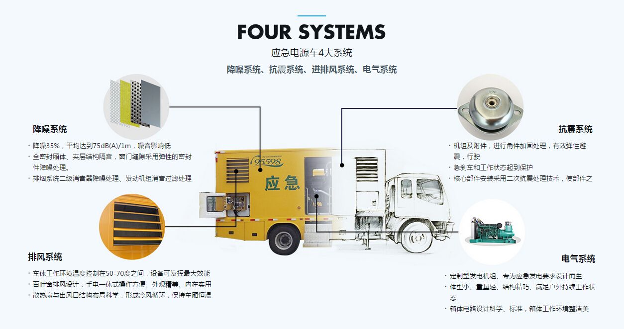 東風(fēng)多利卡D9_400kw電力搶修車,緊急停機(jī)按鈕選擇方便,當(dāng)機(jī)組發(fā)生緊急情況時(shí),按緊急停機(jī)就可停止,故障解除后,按鈕即可復(fù)位。車廂外板選擇電解鋼板,夾層選擇50mm厚耐火巖棉和阻燃金屬布,內(nèi)壁選擇高密度穿孔鍍鋅鋼板,漂亮大方。機(jī)組產(chǎn)生的熱量需要排出,也需要新鮮空氣給予給柴油機(jī)燃燒而不能產(chǎn)生負(fù)壓,設(shè)置合適的進(jìn)風(fēng)和排風(fēng)通道,可滿足機(jī)組通風(fēng)的同時(shí)減少噪音。外表專利技術(shù),耐用漂亮。廂體側(cè)面前部及后部上方各開有進(jìn)、排風(fēng)手動(dòng)(電動(dòng))百葉窗,確保了機(jī)組正常的進(jìn)風(fēng)量和排風(fēng)量。隨車配有消防滅火器兩只,在車門附近。廂體結(jié)構(gòu)材料為防腐冷軋鋼板,保障車廂具有足夠的強(qiáng)度,內(nèi)部用冷彎成型的骨架,廂體表面光滑平整。