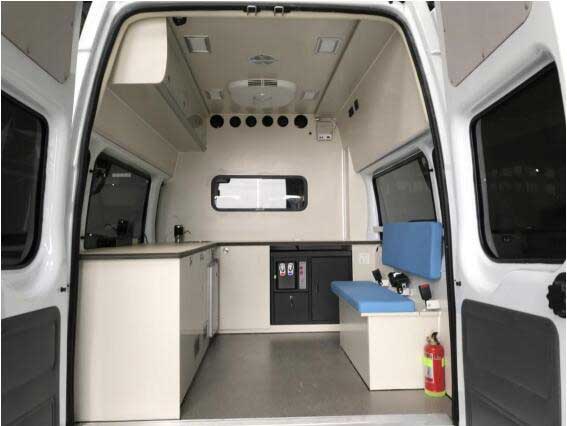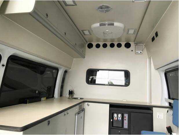 福特新時代全順V348流行病學多功能檢測車,檢測艙配備 1kg 干粉滅火器,遇突發(fā)火災(zāi)可緊急滅火。車內(nèi)安裝了手持對講機系統(tǒng),12V,輕易工作人員溝通。改裝原材料使用適合相關(guān)標準并通過“CCC”質(zhì)量認證的材料。帶充電功能的逆變系統(tǒng),純正弦波2000W。獨立電源中央控制系統(tǒng),采用利于,用電安全。配GPS 導航一體機、 監(jiān)控系統(tǒng)。頂部照明燈,后照明燈使用LED式,節(jié)能環(huán)保,減少整車運行成本。車外螺釘、 螺母、墊片等緊固件優(yōu)先選用不銹鋼,防腐防銹。