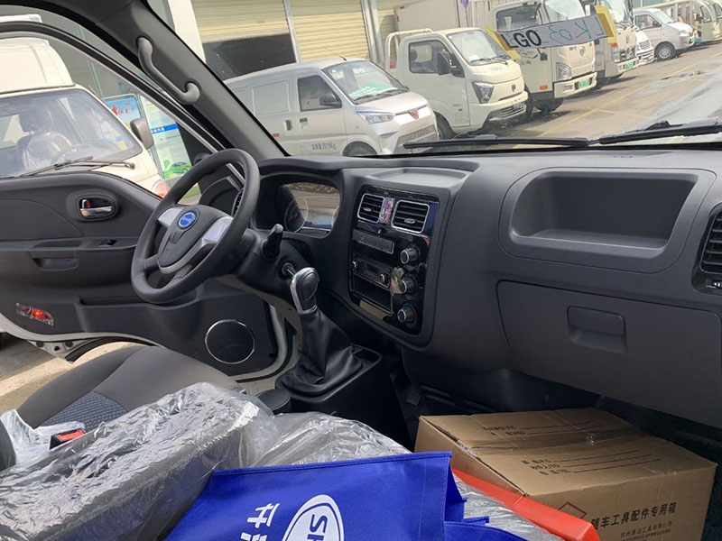 原有的加油口被替換為充電插口,支持快充和慢充兩種模式。185R15LT 8PR輪胎,高速安全、減震舒適、操縱穩定。3100mm軸距,模塊緊湊,車身承載能力及通過性優秀。ABS防抱死制動系統,電子制動力分配系統緊急制動輔助系統都能有效提高全車行駛的安全性和穩定性。