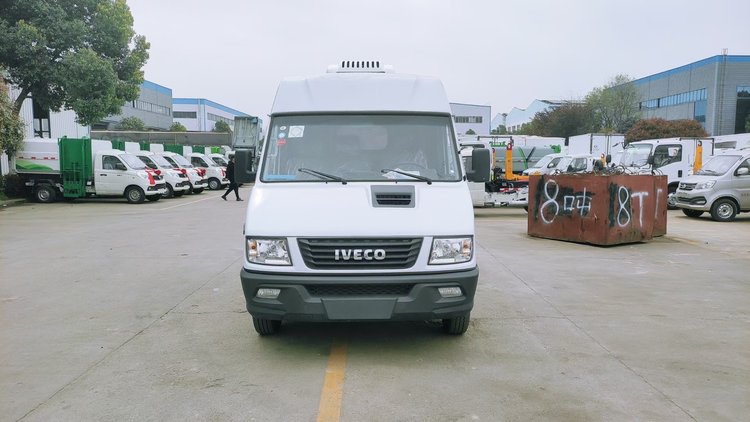 依維柯130馬力發動機。后雙開門。單排。這款車的長寬高分別為長4875mm、寬2000mm、高2850mm。電動玻璃,ABS,前實心盤后盤制動,遙控鑰匙,后雙胎,尿素系統。