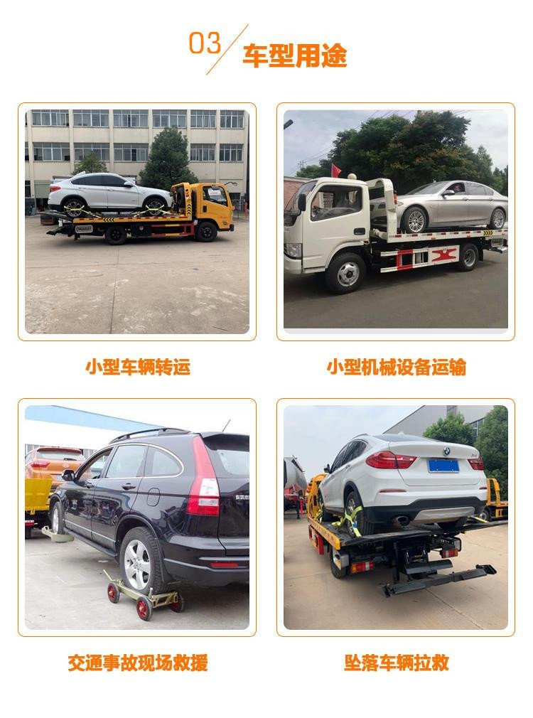 江鈴順達5.5米一拖二道路救援清障車功能特點:按底盤劃分為紅巖重型道路救援清障車,斯太爾重型道路救援清障車,平板道路救援清障車,依維柯道路救援清障車,江淮道路救援清障車,五十鈴道路救援清障車,東風小霸王平板道路救援清障車,東風多利卡托吊型道路救援清障車,東風平頭道路道路救援清障車等。既省油又簡單。非常適用于城市狹小街道以及地下室對小型車身進行快速救援。全自動夾緊裝置,因為車身短、高度低,特別適應地下車庫的車身救援。后支撐臂能夠牽引2噸以下的整車。道路救援清障車是指用于道路清障、救援的專用整車。同時也非常適合城市狹小街道和公路上小型車輛的快速救援和搶修。道路救援清障車有多種類型,按類別主要分為:拖吊連體型、拖吊分離型,一拖一型,平板一拖二型,多功能道路救援清障車,液壓自動夾緊型。