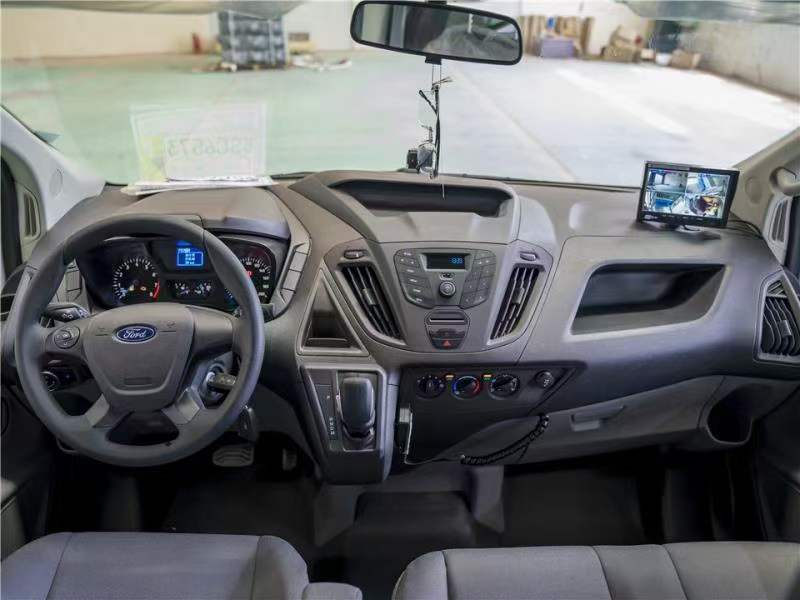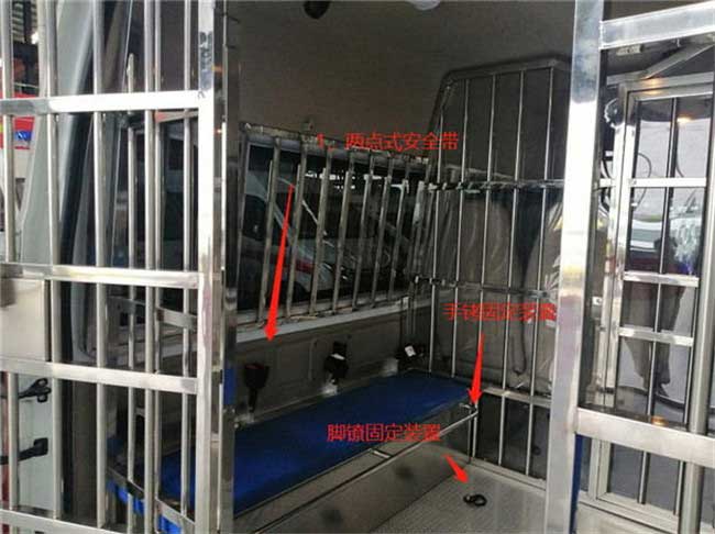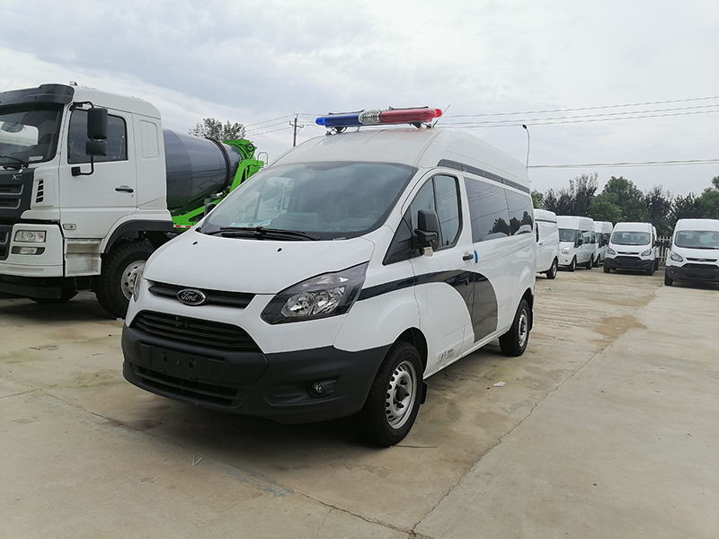 警用囚車_福特新全順V362囚車,后艙囚籠。為相關部門的安全工作給出非常有力的確保。系統應用攝像機能對車內辦公區、車身周邊、囚室區進行全方位監控。車上設備可對攝像資料進行實時顯示、存貯。整車涂裝,耐腐蝕性強。通過配備的無線車載終端與總部指揮中心進行及時數據傳送和在線指令傳達,更加的人性化與智能化。