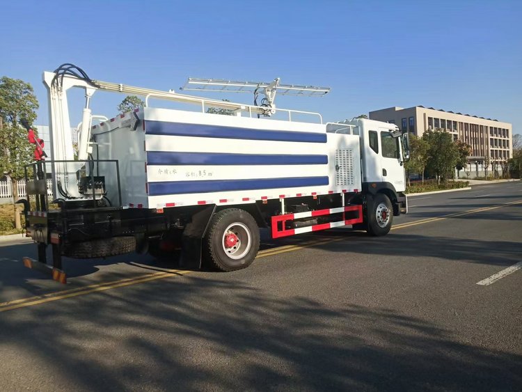 多利卡D9_8方太陽能光伏清洗車高壓清洗車,即可清洗太陽能光板,又可以清洗馬路緣、人行道和護欄隔離區。通過高壓泵將水通過高壓管道,從高壓噴嘴噴射出高壓水,用于清洗護欄,非常干凈。柴油發動機功率,所以步行系統,清洗和噴淋系統有足夠的力量去工作。安裝的有低水壓和高水壓兩種獨立水路系統,可為清洗時給出不同的水壓。