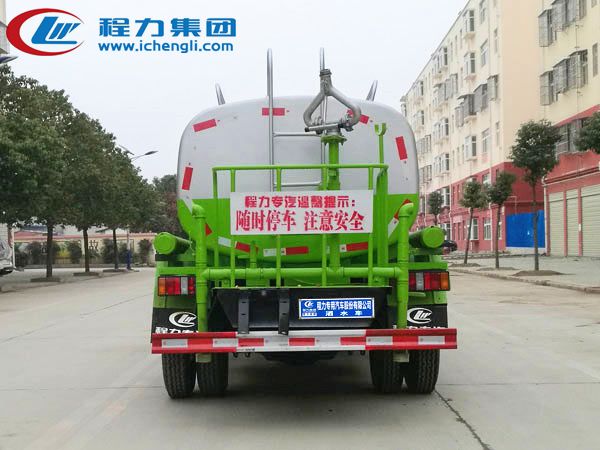 專用配置:罐體容積:5立方米,罐體鋼板為4mm碳鋼Q235材質專用容積板一次成型,罐內隔板具有防波作用,以減輕汽車行駛時罐體液體沖擊;配大功率專用灑水泵,泵可自吸自排;整車前沖、后灑、側噴、后平臺帶綠化灑水炮,灑水炮可全方位旋轉,可連續調成直沖狀、大雨、小雨、毛毛雨;前封頭帶水位計,后平臺主管路帶1寸澆花接口,后爬梯,帶1個消防接頭,帶1個自流閥,1個過濾裝置。