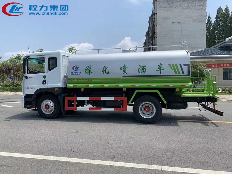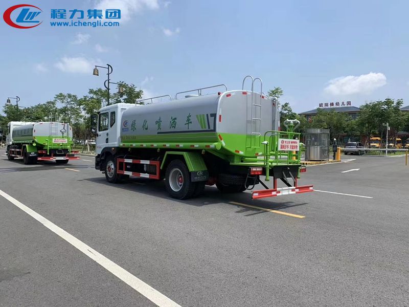東風(fēng)D9國六灑水車是一款采用國六排放標(biāo)準(zhǔn)東風(fēng)D9多利卡高配版:康明斯230/195馬力發(fā)動機(jī)/玉柴200馬力發(fā)動機(jī),法士特小八檔帶高低檔變速箱,東風(fēng)底盤改裝的環(huán)衛(wèi)車,該車罐體容積:14-15立方米,標(biāo)配前沖、后灑、側(cè)噴、后平臺高炮,是園林綠化、小區(qū)物業(yè)、公路養(yǎng)護(hù)的常用車型。