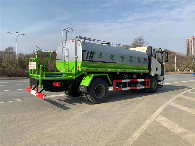 專用配置:罐體容積 :13.5立方,罐體采用國標Q235碳鋼材質,新式工藝罐體,罐體厚度4MM,前后封頭5MM加厚型,罐體內雙層隔板具有防波蕩作用,以減輕汽車行駛時罐內液體沖擊;灑水車整車及外形尺寸嚴格按照國家機動車公告制作而成;裝配大功率專用灑水泵,前沖、后灑、側噴、后平臺帶消防式灑水炮,灑水炮可全方位旋轉,可連續調成直沖狀、大雨、小雨、毛毛雨;配消防接口,自流閥,濾網,帶自吸自排功能。前封頭帶水位計,后平臺主管路帶1寸澆花接口,后爬梯,帶1個消防接頭,帶1個自流閥,1個過濾裝置,其余標配。1、可選裝后平臺帶霧炮機組用于噴霧降塵、農藥噴灑作業;2、可選裝前置電子灑水炮駕駛室操作;3、可選裝氣動球閥駕駛室操作。
