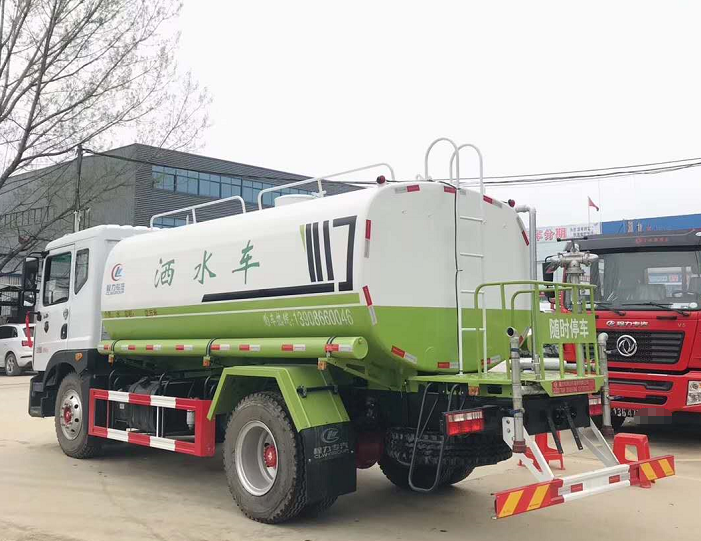 這款程力公司出產(chǎn)的東風(fēng)D9大多利卡多功能綠化灑水車,灑水車采用了東風(fēng)公司的正宗原裝底盤,東風(fēng)康明斯210馬力發(fā)動(dòng)機(jī),六缸機(jī),國(guó)六排放;帶空調(diào)和方向助力,車頭前配置前沖,后灑,側(cè)噴,高位花灑,后平臺(tái)帶綠化灑水車炮,罐體采用4mm武鋼優(yōu)質(zhì)碳鋼制作,裝水13.6噸-14.6噸;罐體后帶工作平臺(tái),平臺(tái)上安裝綠化灑水高炮,炮可噴灑農(nóng)藥,并有多種雨?duì)羁烧{(diào)節(jié)(大雨中雨毛毛雨霧狀),泵可自吸自排,帶自流閥,帶消防接頭,帶過濾裝置。