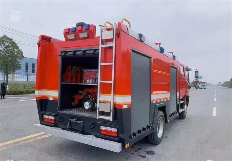 東風多利卡D7_4.5噸泡沫消防車,消防炮射程: ≥55 m(水),≥42 m(泡沫)。頂板3mm碳鋼花紋板。消防炮額定流量: 24L/s@0.8MPa。消防泵最大吸深: 7m。消防泵安裝形式: 后置式。載水 3.0 方。