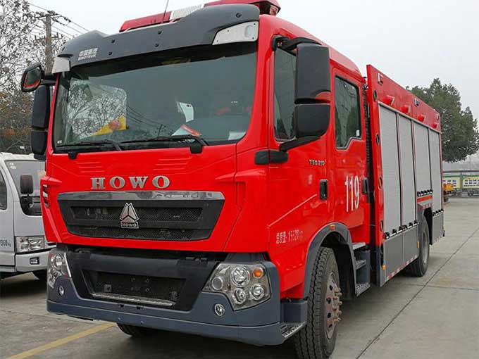 8噸水罐消防車_重汽豪沃T5G水罐消防車,轉向盤操作靈活自如,可前后、上下調整。活力感和操控感是這款車較大的亮點。駕乘體驗舒適,行車體驗安全。內飾板選用花紋鋁板制作,表面經過陽極氧化處理,堅固耐用。車門的上車踏板做了優化設計處理,前面三級踏板,后面四級踏板設計,間距合理。配備電動門窗,可用遙控鎖匙。駕駛室四開門設計,能盡可能乘坐更多消防官兵,配合配套的消防設備,大大提升消防作戰能力。