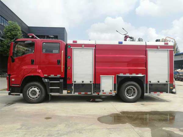 6噸泡沫消防車_慶鈴五十鈴FVR泡沫消防車上裝配置:主框架結構使用優質方管焊接,外裝飾板使用碳鋼板焊接,車頂防滑,可行走。器材箱內的儲物盒收納整理工具簡單。泵房位于整車后部,兩邊與后邊設鋁合金卷簾門,內有照明燈,泵室兩側可放置部分常用器材。加裝有回轉警燈開關,通訊設備預備接口,100W警報器。