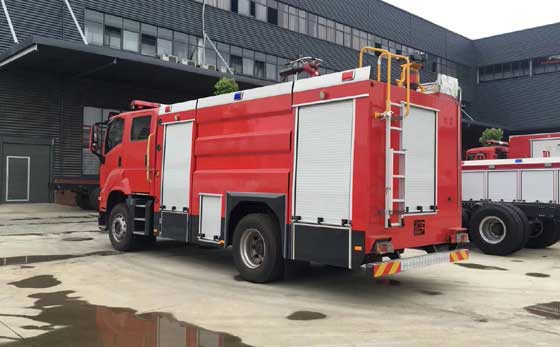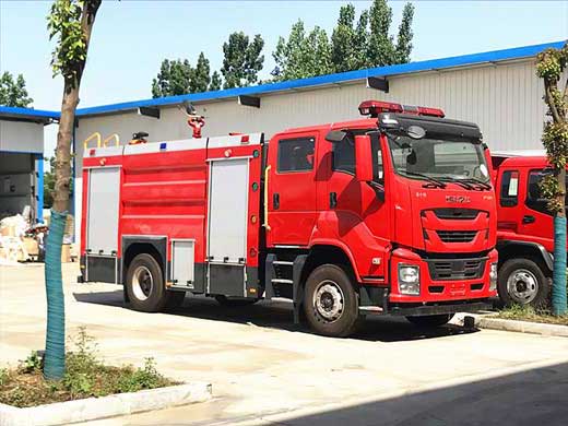 6噸泡沫消防車_慶鈴五十鈴FVR泡沫消防車底盤配置:五十鈴6HK1-TCG61型號發動機,動力強大、高效省油。全車設計精美,造型新穎,整體大氣有格調。操作自動靈活,聯絡指揮自如。法士特8擋變速箱。