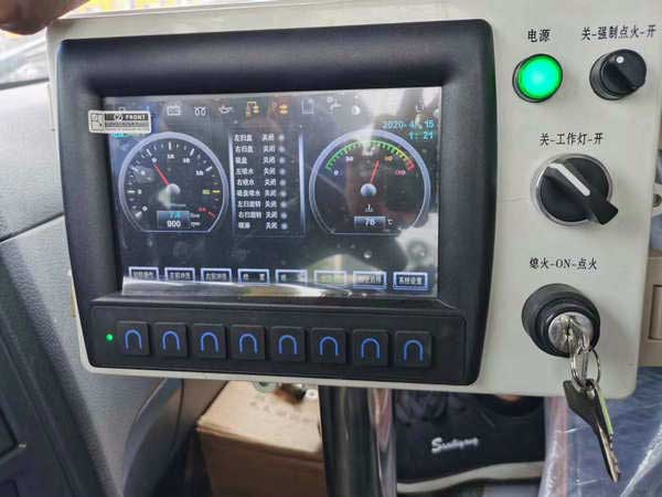 多利卡D7_9方洗掃車上裝配置:選用中置2掃盤。水箱5方,垃圾箱4方。室內監視倒車和洗掃轉臺。