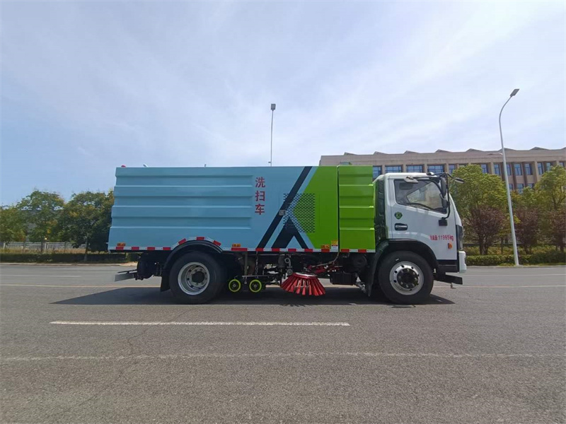 東風多利卡D7_9方洗掃車,前置掃盤選用”多維一體運動技術”及單擺結構、浮動式避障防撞技術,保證作業時不碰損。能夠隨垃圾箱體舉升的動力倉罩可使動力系統的維修保養極為便利。還能夠根據用戶需要配備鏟雪機,掃雪機和道路清洗架,以滿足用戶的多樣化要求。具有作業裝置集中,噴嘴離地間距恒定,刷洗—沖洗—吸收污水等作業動作連續流暢,作業飛濺少、污水吸凈率高,清洗寬度大,清洗效率高等特點。