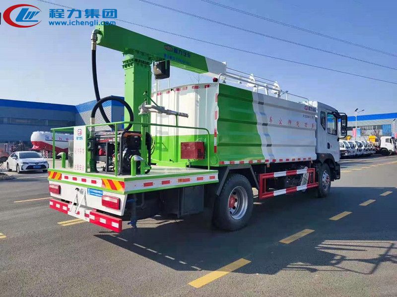 上裝配置:罐體容積:15立方,罐體內部做防腐,帶加熱功能,前沖、后灑、側噴、高炮,抑塵噴灑桿(帶旋轉伸縮功能),噴灑桿離地3-4米 。后部平臺帶8KW副發電機組,罐體內部加兩個1.5KW電動馬達(帶攪拌功能),平臺和噴灑桿藍色。遙控操作噴灑桿上下左右旋轉,國內知名品牌回轉支撐,大品牌油缸。