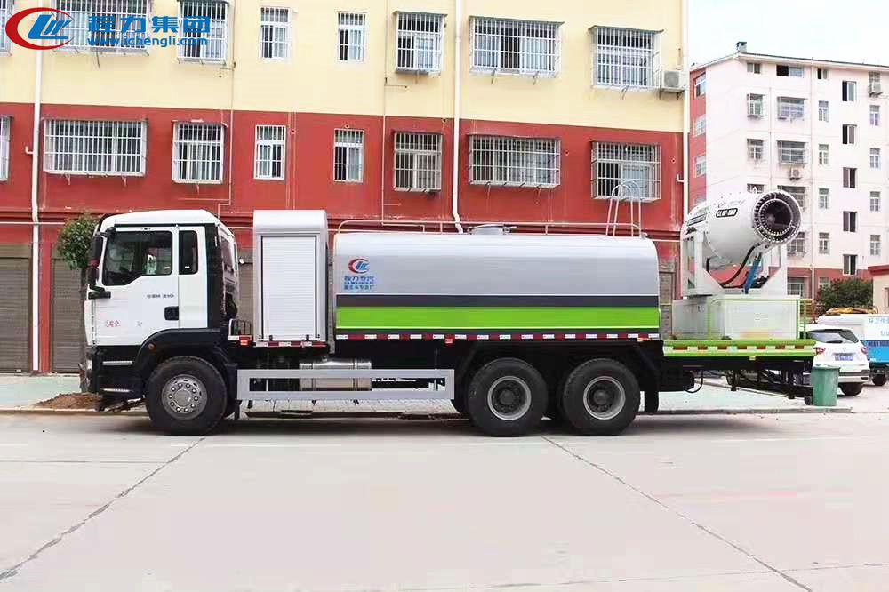 上裝配置:罐體容積:18立方,方形罐體,罐體鋼板采用Q235碳鋼鋼材制作,鋼板厚度5mm,配大功率專用灑水車泵,帶前沖、后灑、側(cè)噴功能,尾部帶工作平臺,平臺上安裝綠化高炮和風(fēng)筒式霧炮機(霧炮可用于農(nóng)藥噴灑、多功能抑塵等功能),帶柴油副發(fā)電機組,操控方式:手動/無線遙控器(遙控距離100米),帶消防接口,自流閥、可自吸自排,該車輛結(jié)構(gòu)緊湊,布局合理,部件做工精細(xì),產(chǎn)品配置完善,操作性能好。后平臺可選裝50-60米、60-70米、80米、100米、120米霧炮機組;其他標(biāo)配。