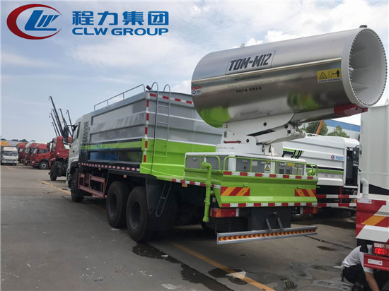 天龍抑塵車工作原理:采用配備的副發動機及發電系統向(霧炮)風機供電,利用超高風壓將高壓水泵噴出的水霧加壓噴射,以得到更遠距離的輻射范圍。霧炮采用遙控裝置,可自由調整噴射角度及旋轉方向,使用更加便捷。霧炮車同時也被廣泛應用于城市街道、港口碼頭、露天物料堆場、煤炭物流園區、露天礦山開采區、露天爆破粉塵、建筑施工拆遷、城市園林綠化、農業噴藥等項目或場所的除塵降溫、消毒防疫。東風天龍多功能抑塵車后部可選配河南萬豐牌WF-120型環保噴霧機組,實際水霧射程80-100米左右。